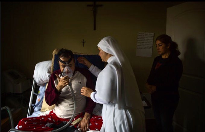 A religiosa Maria Socorro contou ao jornal americano ‘Los Angeles Times’ que para ela, a cama onde o doente está deitado “é a Cruz” e o paciente “é Cristo”.